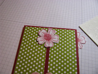 4. Adhere the flower and leaf images to the top of the square small dot paper. Adhere this to the left hand side of the Certainly Celery card stock.